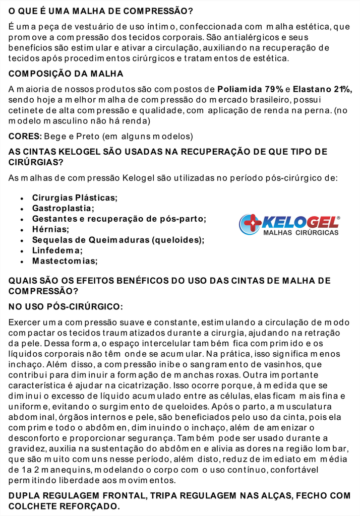 NÃO COMPRE TAMANHO MENOR QUE O INDICADO NA TABELA, PRODUTO MODELAGEM PEQUENA E DE ALTA COMPRESSÃO.