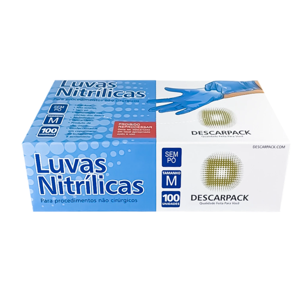 LUVA NITRÍLICA DESCARTÁVEL SEM PÓ AZUL DESCARPACK – COR AZUL