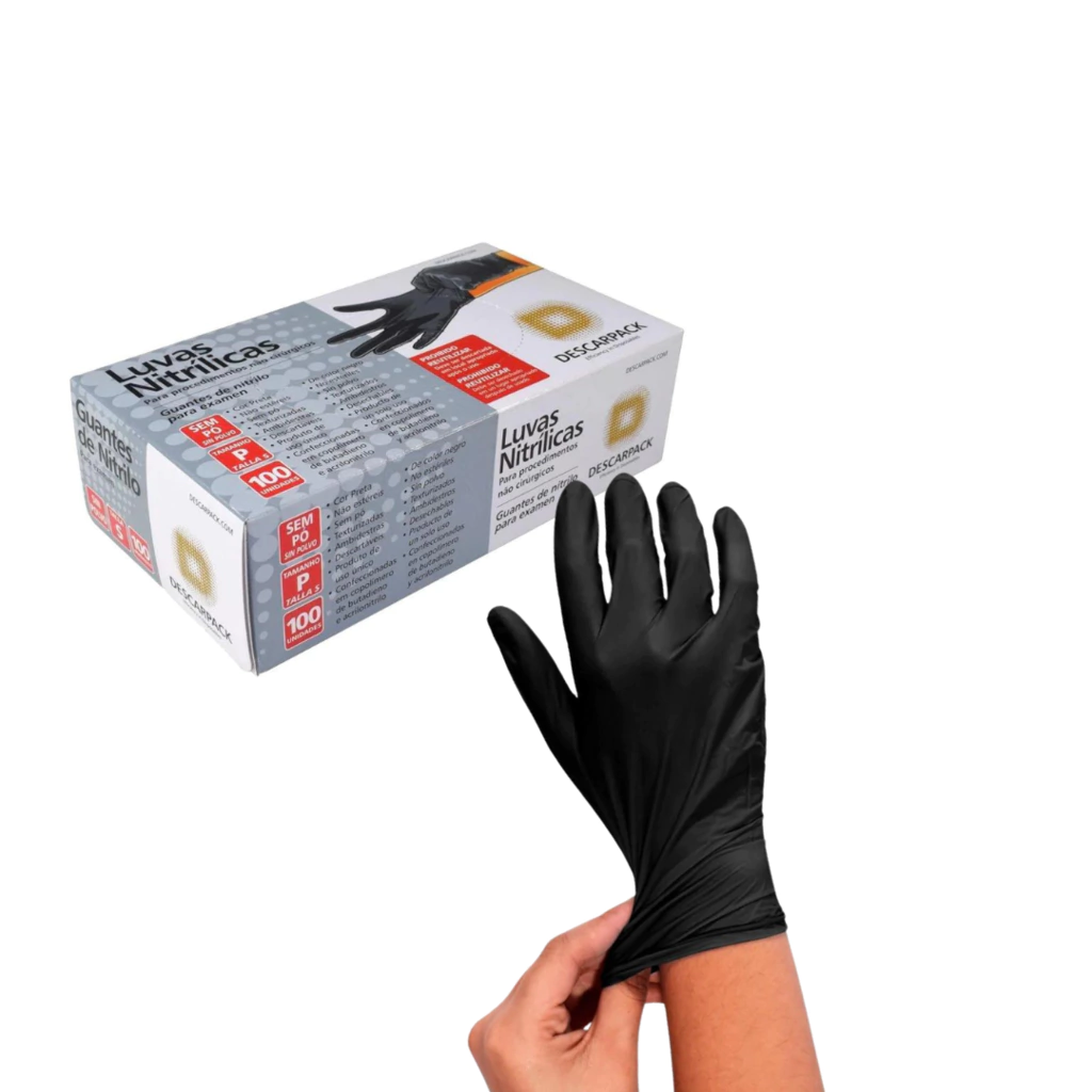 LUVA NITRÍLICA DESCARTÁVEL SEM PÓ PRETA DESCARPACK– COR PRETA