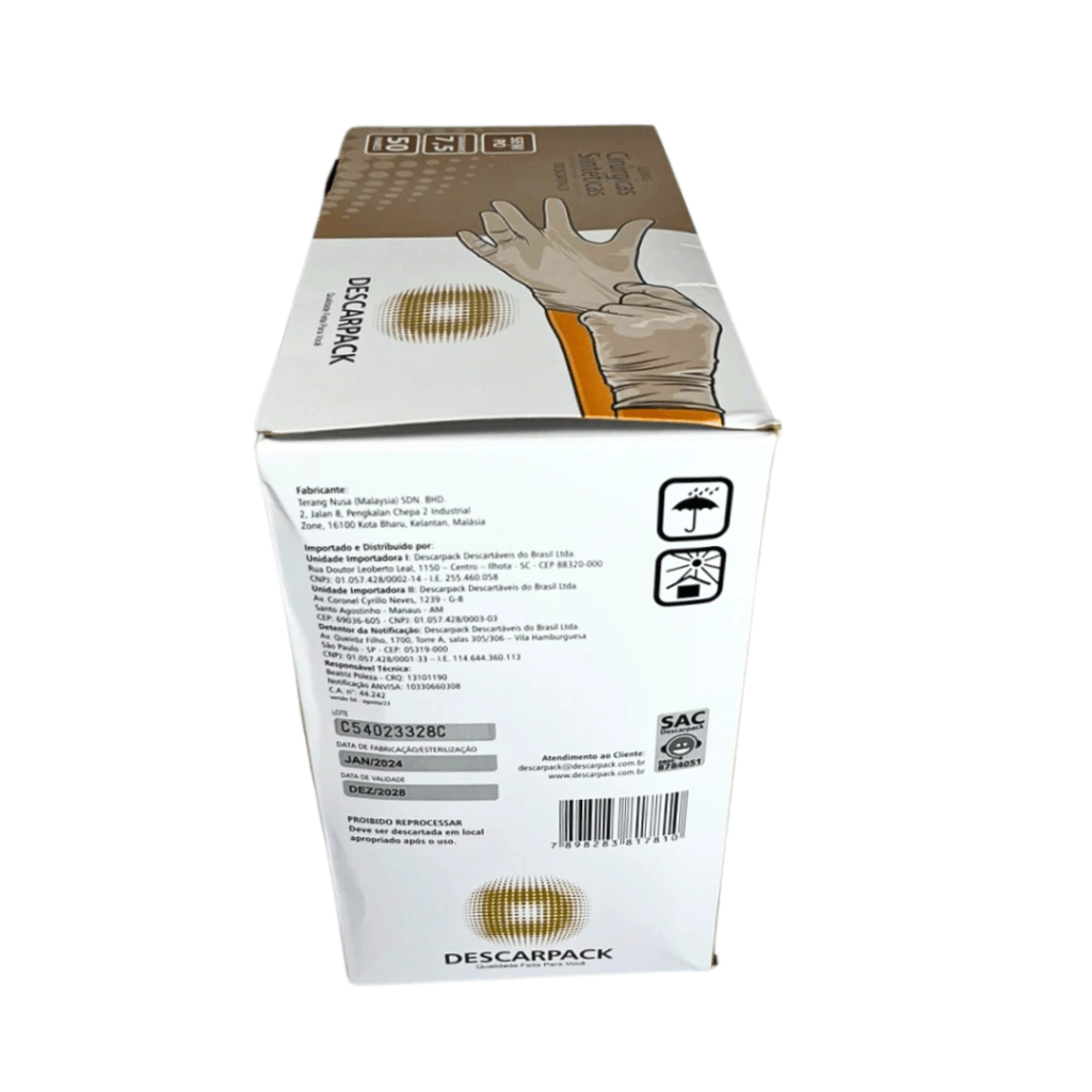 Com um ajuste anatômico perfeito, as luvas oferecem conforto prolongado e excelente sensibilidade tátil, essencial para procedimentos que requerem precisão. Elas são estéreis, assegurando uma barreira eficaz contra agentes biológicos e minimizando o risco de contaminação. Produzidas seguindo normas rigorosas de qualidade e segurança internacionais, as Luvas de Policloropreno Descarpack possuem registro ANVISA nº 10330660308, garantindo sua conformidade para uso no Brasil.