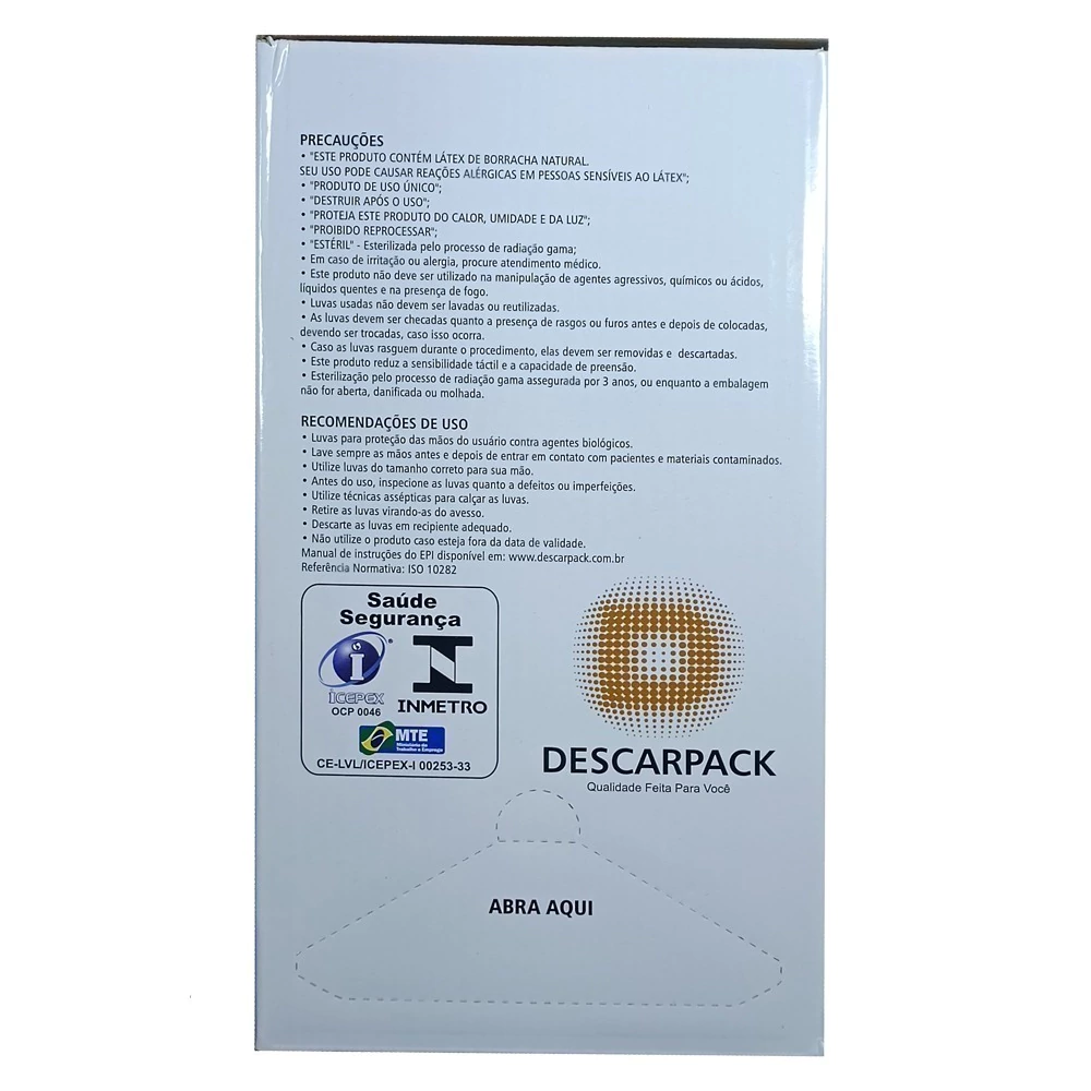 A Descarpack, conhecida por seus produtos de alta qualidade, fabrica estas luvas sob estritas normas de segurança, com a Notificação Anvisa: 10330669156. Esta certificação da Agência Nacional de Vigilância Sanitária (Anvisa) confirma que o produto cumpre com todos os requisitos regulatórios necessários para sua utilização em ambiente médico, proporcionando uma barreira eficaz contra a transmissão de infecções.