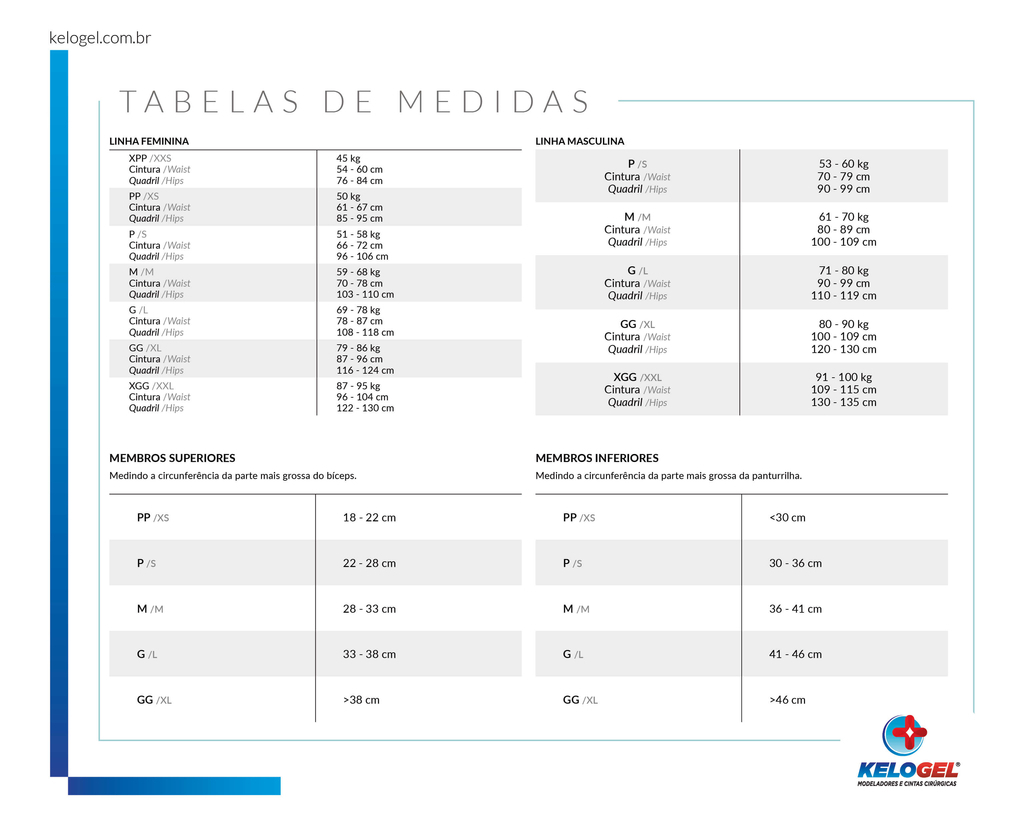 NÃO COMPRE TAMANHO MENOR QUE O INDICADO NA TABELA, PRODUTO MODELAGEM PEQUENA E DE ALTA COMPRESSÃO.